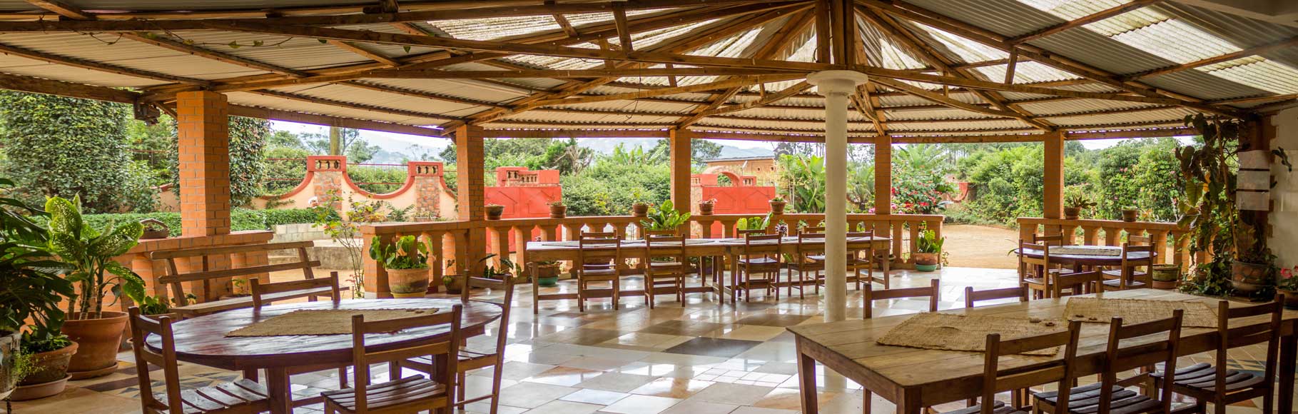 Le cadre de la propriété offre une vue d’ensemble du village d’Ambatomanga et une vue panoramique d’un paysage bucolique malagasy. L’ensemble de la propriété est composé d’une petite ferme d’élevage laitier, un jardin potager, un espace vert de détente. Séjour idéal pour les familles. L’intérieur offre un espace de rencontre chaleureux avec ses petits salons, sa grande hall, son bar.